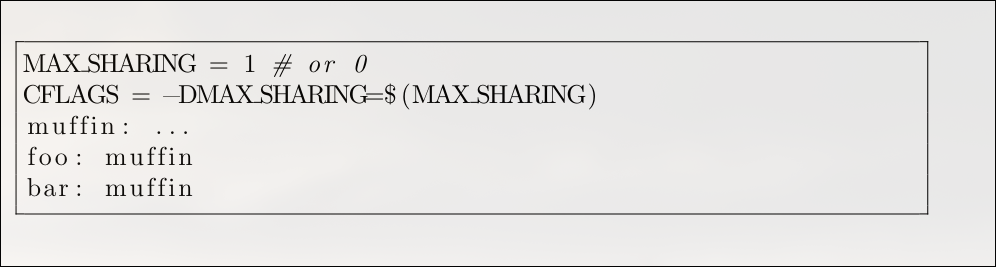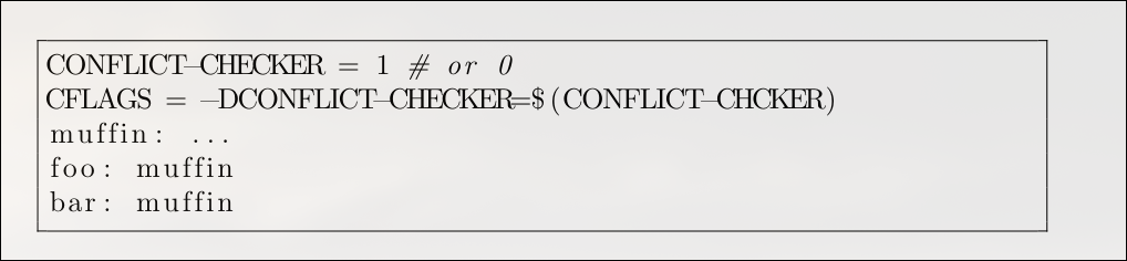 A significant challenge with Make is building a component in multiple configurations at the same time. For example, it's not obvious how to build both foo and bar with their different library variants in a single, clean process